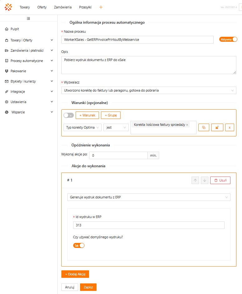 Nazwa procesu automatycznegoWorkerShopErpIntegration – SendOrderSalesDocumentToShop