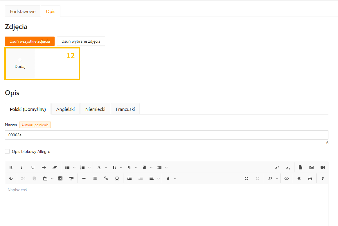 | Towary > Edytuj towar | Opis | 5 | Ogólne > Towary > Edycja karty towaru > Opisy i tłumaczenia | Opis | 6 | |