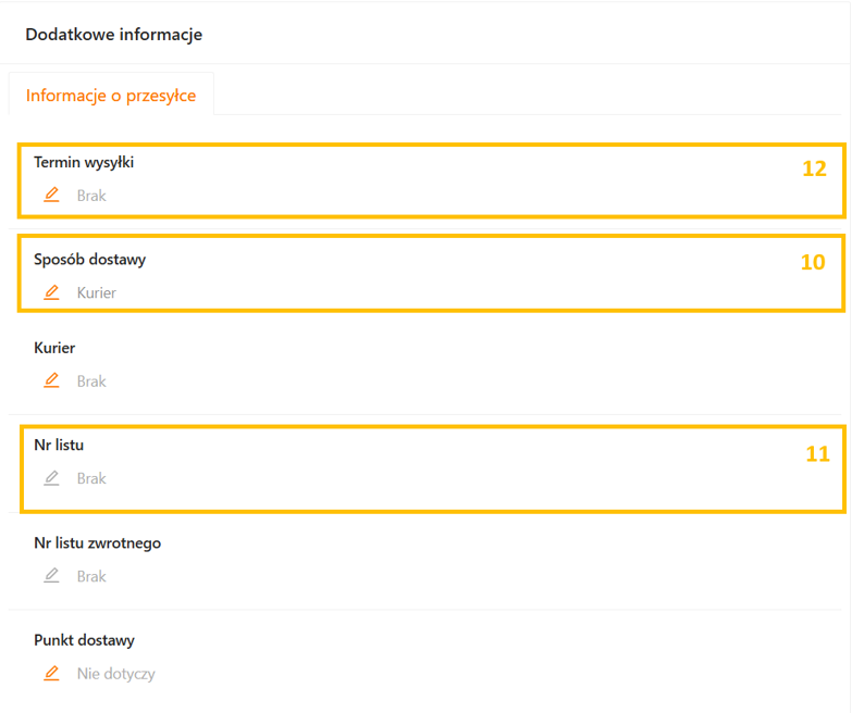 | Edycja zamówienia > Formularz zamówienia | Sposób dostawy | 10 | Edycja Zamówienia sprzedaży > Ogólne | Sposób dostawy | 3 | |