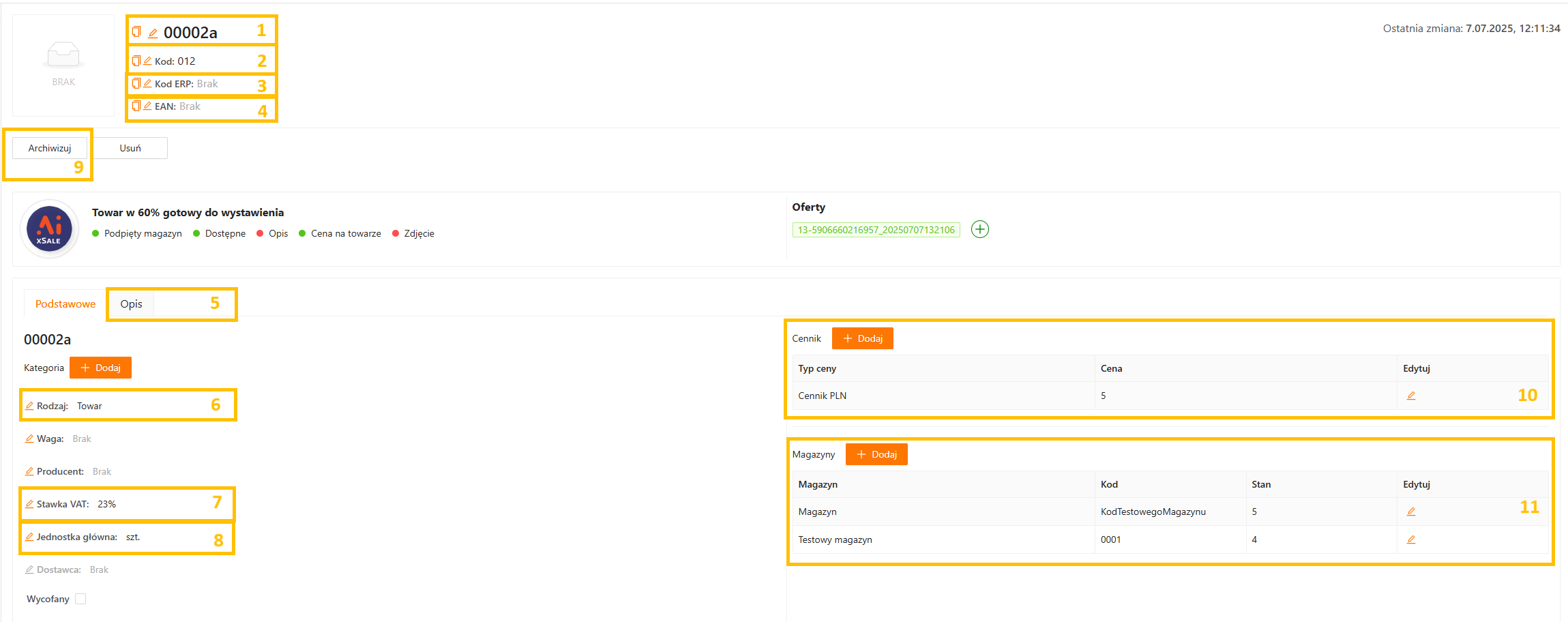 | Towary > Edytuj towar | Archiwizuj | 9 | Ogólne > Towary > Edycja karty towaru > Ogólne | Archiwalny | 10 | |