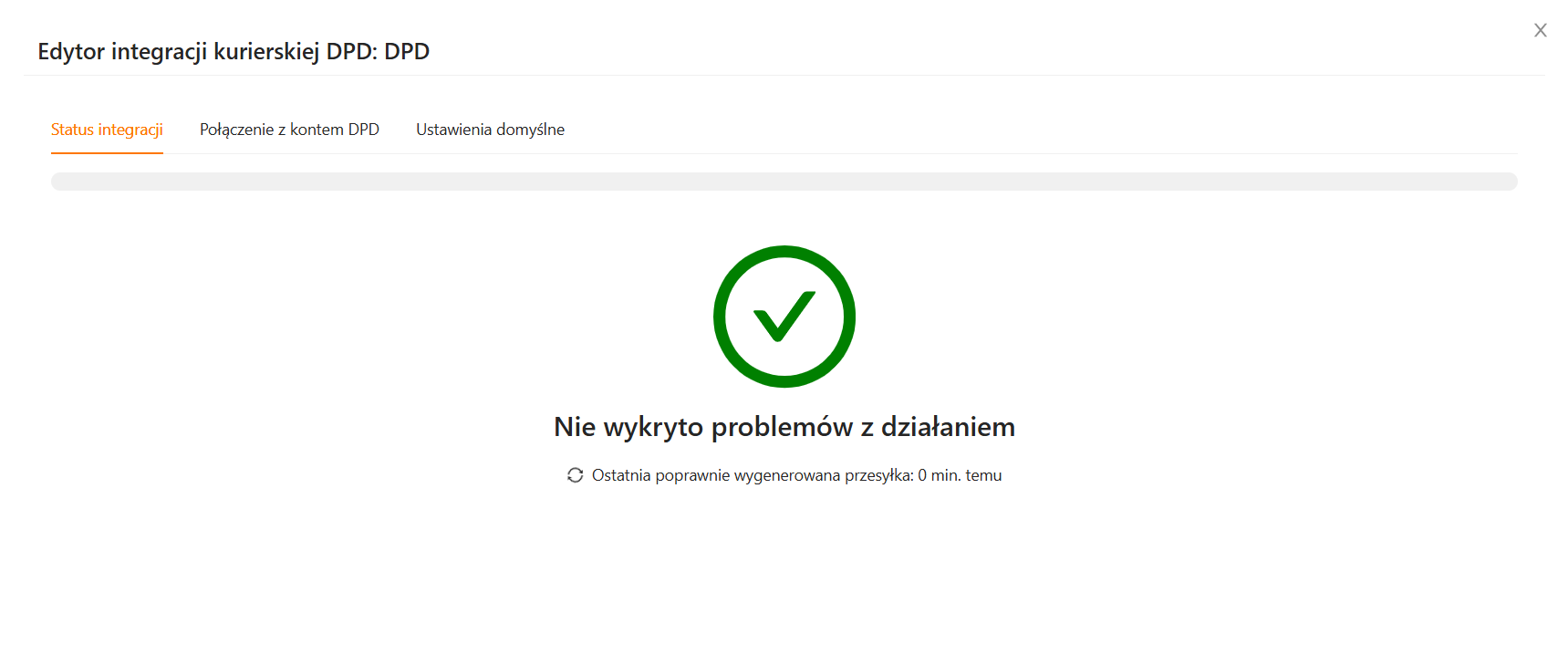 Po poprawnym utworzeniu pierwszej przesyłki status integracji zostanie zaktualizowany: