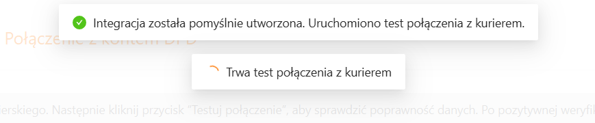Po wprowadzeniu wymaganych informacji kliknij przycisk Testuj połączenie, aby sprawdzić poprawność danych autoryzacyjnych. Komunikaty w górnej części ekranu poinformują Cię o przebiegu procesu.