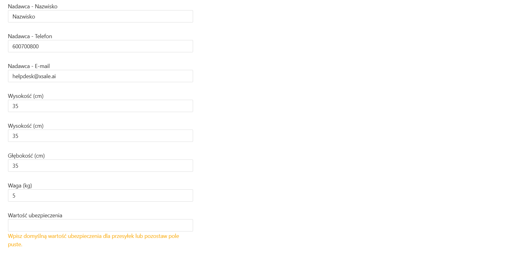 Wprowadzając ustawienia zwróć szczególną uwagę na Wartość ubezpieczenia i konfigurację ewentualnych dodatkowych usług, które mogą zwiększać koszty wysyłek.