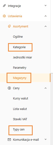 • magazynów – więcej o magazynach na stronie Magazyny,