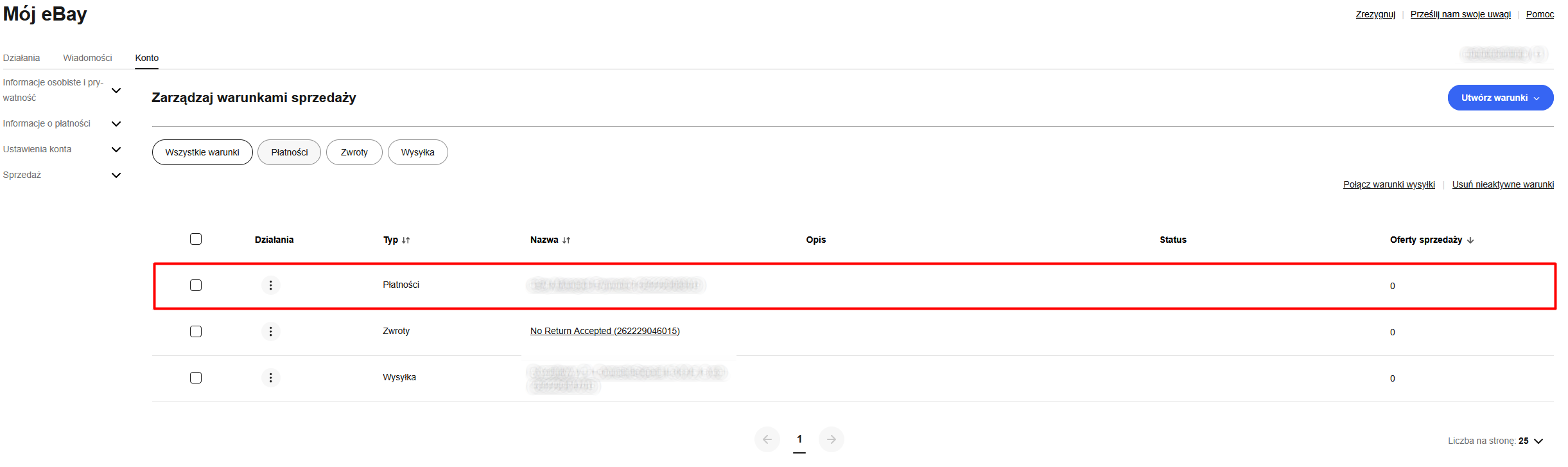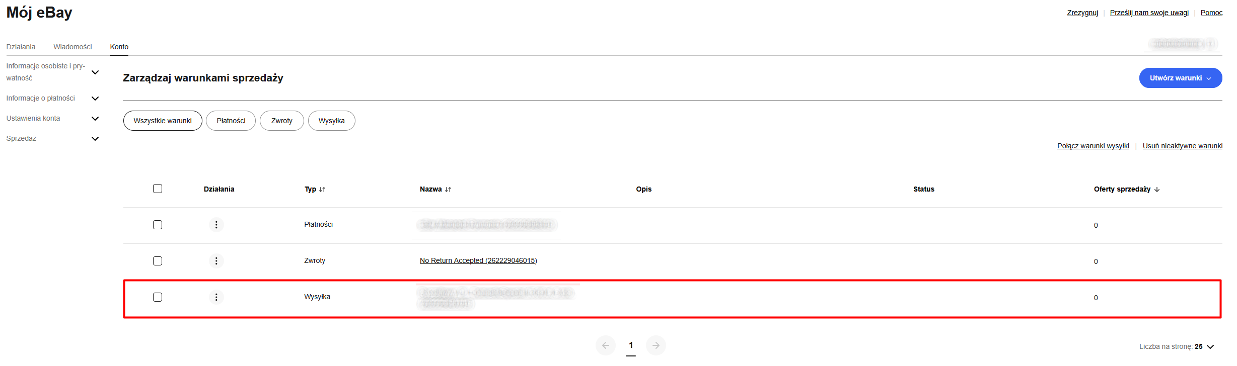 Przypisz towar będący usługą transportową w twoim ERP z formą dostawy z eBay. Sposoby dostawy znajdziesz w zakładce „Zarządzaj warunkami sprzedaży”