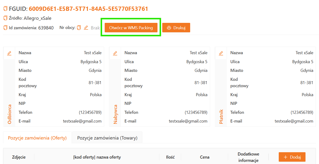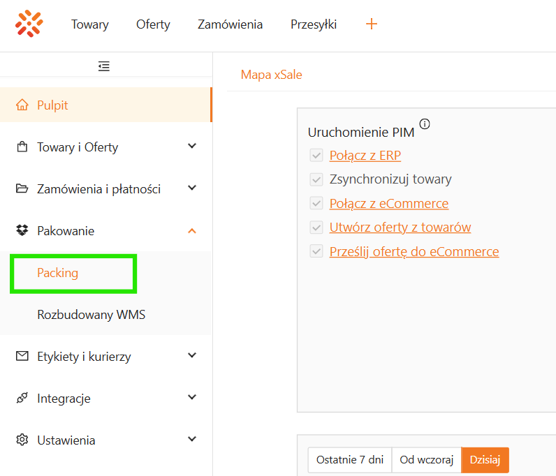 Możesz wygodnie przejść do Packingu z interfejsu xSale: