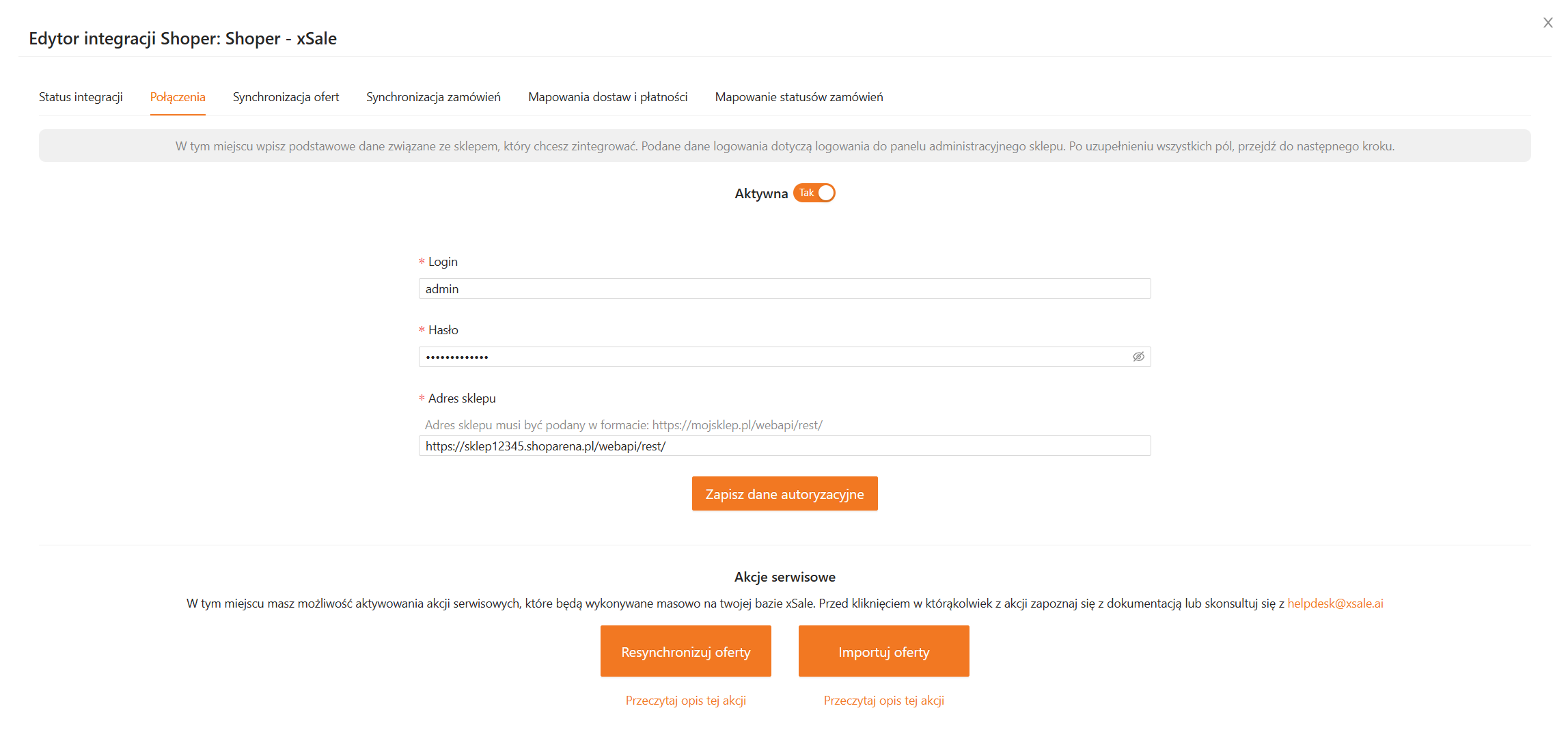 Poniższy zrzut ekranu pochodzi z integracji xSale ze sklepami Shoper.