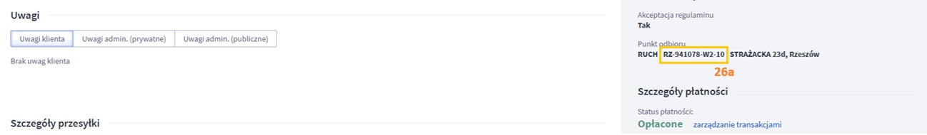 | Punkt odbioru | 26a | *W przypadku korzystania z dodatkowej wtyczki Orlen Paczka, pobierany jest tylko kod punktu odbioru. | ||||
