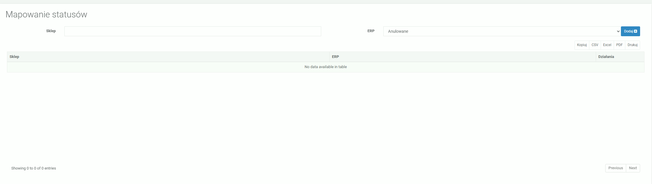 W polu „Sklep” należy wprowadzić nazwę statusu przekazywanego przez Erli za pośrednictwem interfejsu API. Statusy te są zwracane w języku angielskim, zgodnie ze specyfikacją platformy. Statusy te, to: