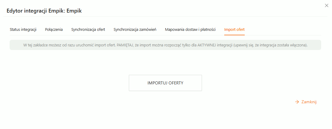 Kolejne punkty w tej instrukcji pokazują wszystkie kroki, dla integracji opartej zarówno o pobieranie zamówień jak i wystawianie ofert.