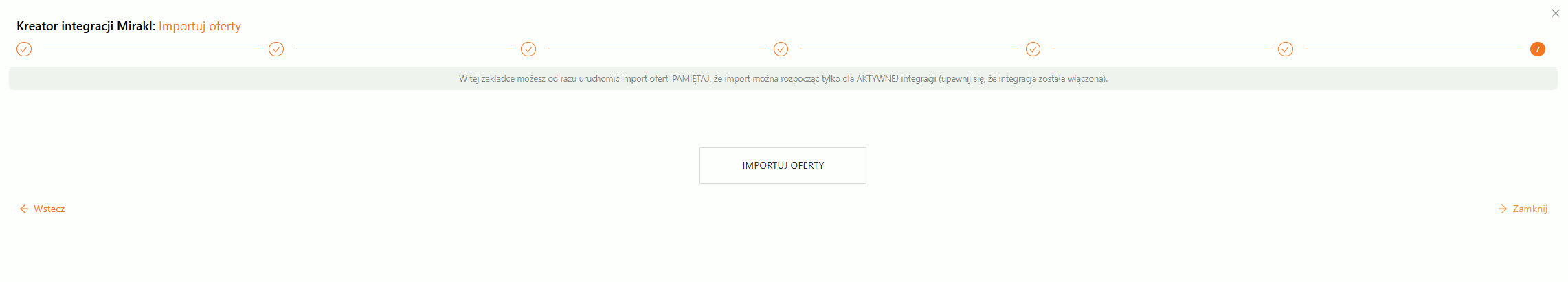 Gdy podczas wypełniania kreatora nie był aktywowany import ofert z kanału sprzedaży, to w kroku jest możliwe uruchomienie tego mechanizmu