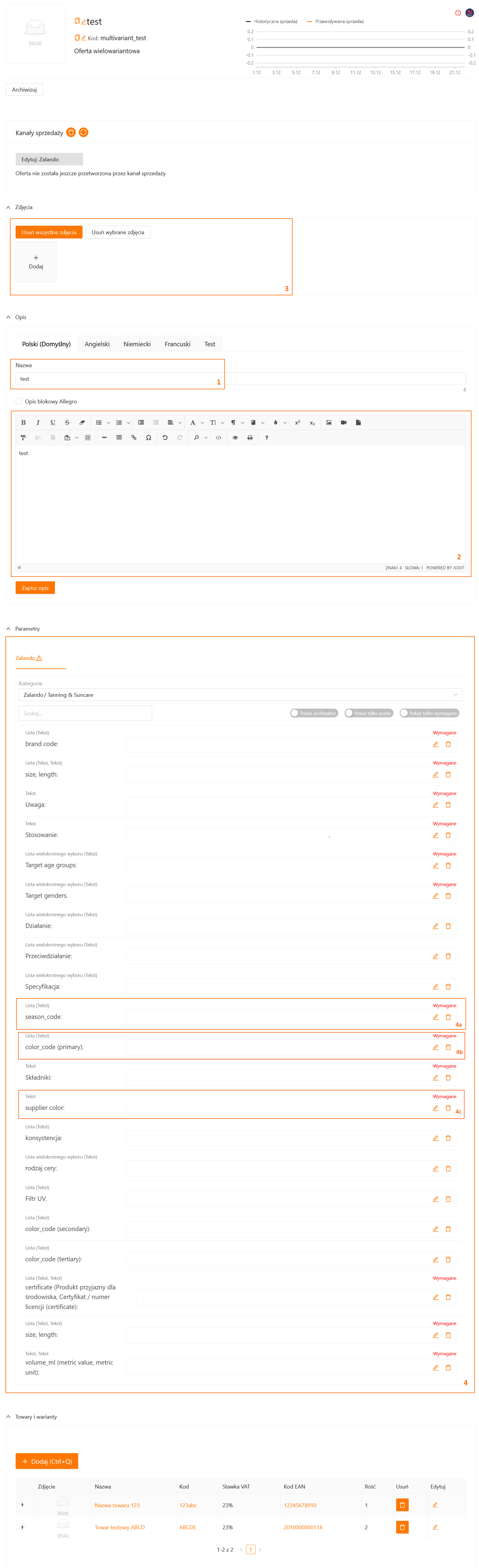| Oferta -> Edycja -> Opis i nazwa oferty w poszczególnych językach | Opis (z języka domyślnego wybranego dla integracji) | 2 | Menu > Articles > Article Status Overview > Edit Article > Edit Article Variant | Description | 6 | |