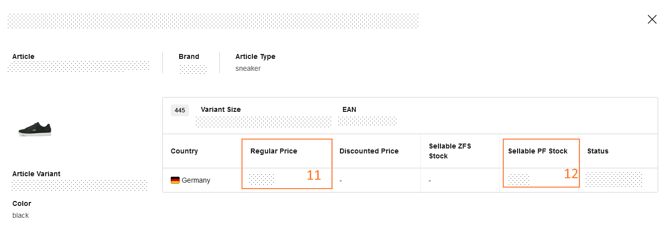 | Oferta -> Edycja -> Towary i warianty -> Edytuj towar > Cennik | Cena | 8 | Menu > Articles > Article Status Overview > Podgląd wariantu przy produkcie | Regular Price | 11 | Przesyłana jest wartość z typu ceny ustawionego dla kanału Zalando |
