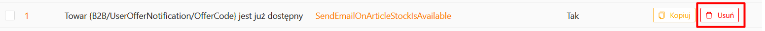 Możesz usunąć istniejący szablon, klikając przycisk Usuń widoczny na liście szablonów.