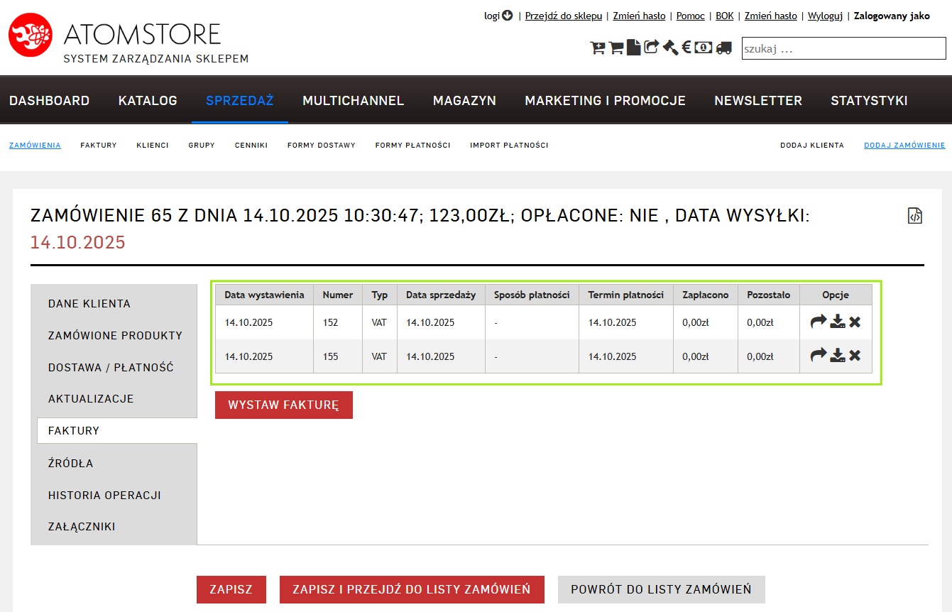 - Zamówienie musi pochodzić z platformy AtomStore.