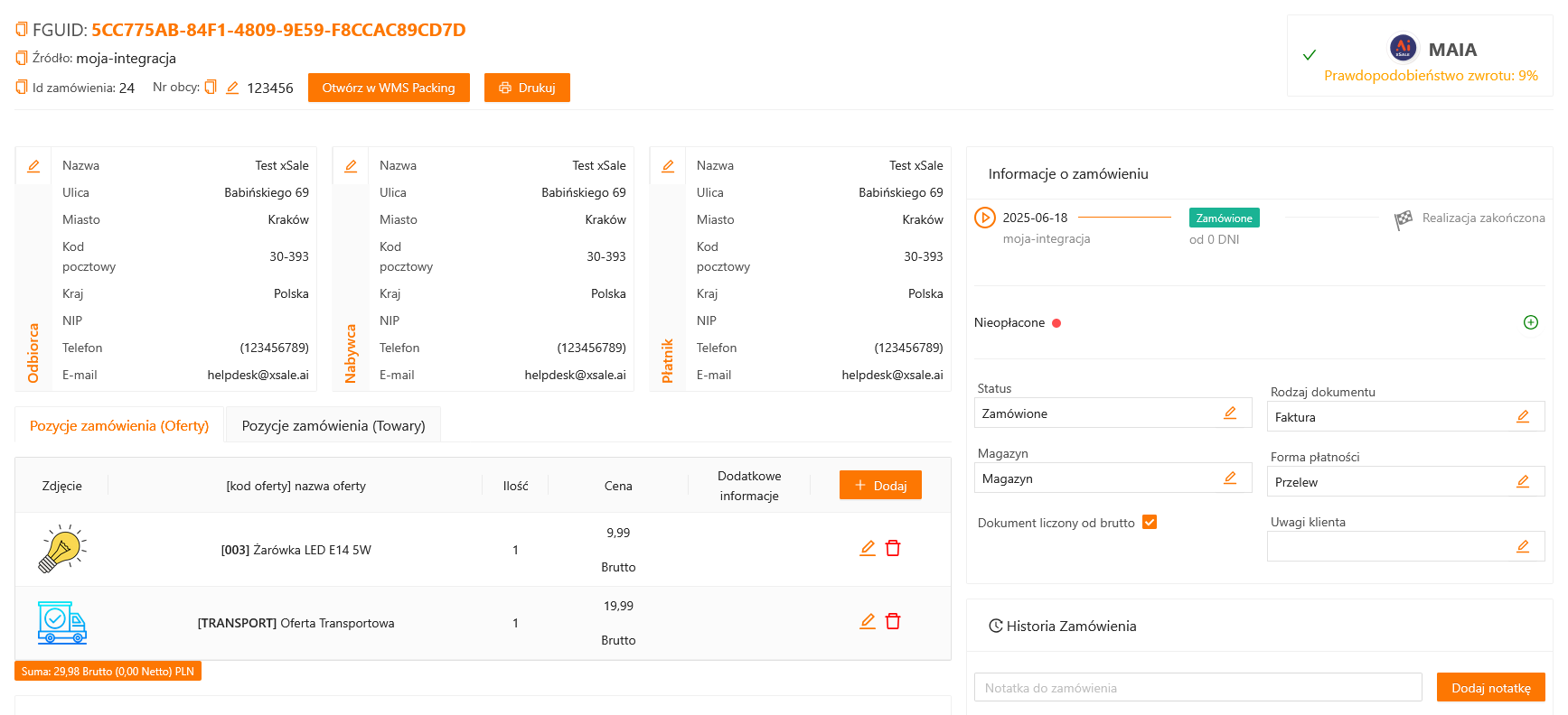 FGUID – jest to indywidualny identyfikator zamówienia. Każde zamówienie w xSale otrzymuje taki numer i jest on niepowtarzalny w całym systemie.