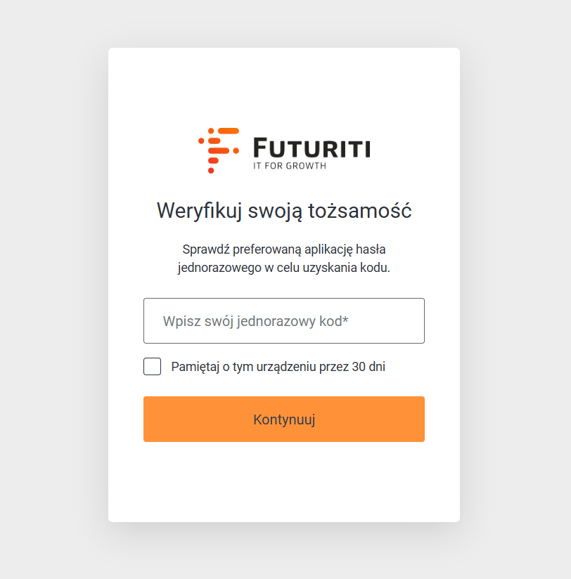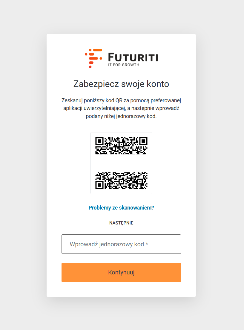 Podczas pierwszego logowania aplikacja poprosi o skonfigurowanie zabezpieczeń umożliwiających aktywowanie dwuetapowej weryfikacji (MFA – ang. Multi-Factor Authentication). Dzięki temu Twoje konto będzie chronione nie tylko hasłem, ale również dynamicznie zmieniającym się kodem z aplikacji, znacząco zwiększając bezpieczeństwo dostępu.