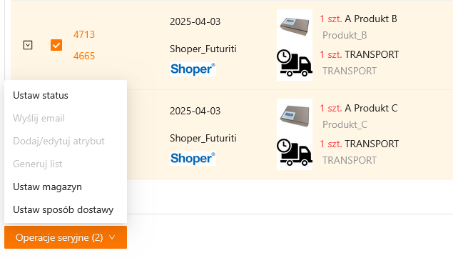 Operacje seryjne pozwalają na seryjne zarządzanie wieloma zamówieniami jednocześnie.