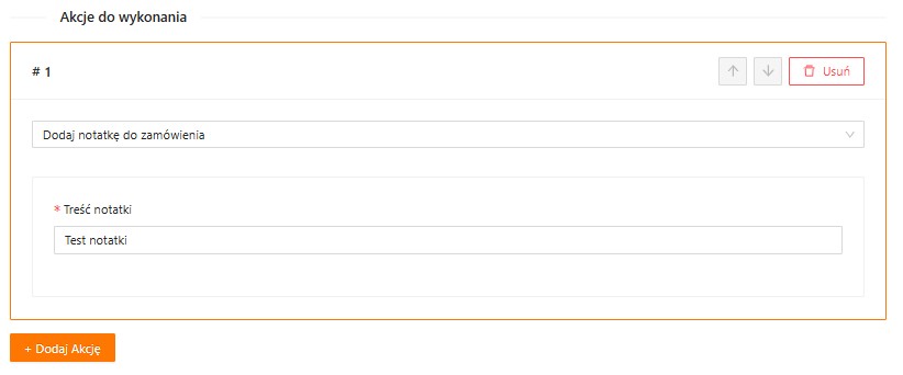 Dodając nowy szablon procesu automatycznego istnieje możliwość ustawienia wielu akcji jednocześnie oraz wskazania w jakiej kolejności mają się wykonywać. Kolejność ustawia się strzałkami góra-dół. A dodawane akcje są ponumerowane według tej kolejności.