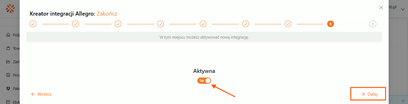 Krok 11. Ważne: zaznacz, że integracja ma być aktywna.