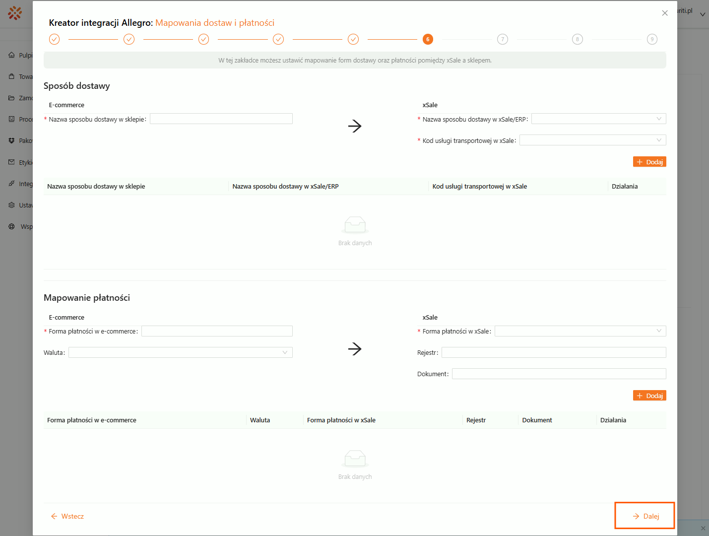 • Wrócić do mapowań dostaw i płatności — można je uzupełnić później, gdy masz już dane w systemie.