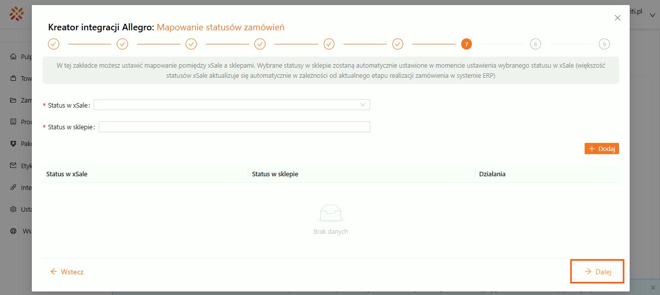 Krok 10. Mapowanie statusów zamówień na tym etapie można pominąć — uzupełnisz je później.