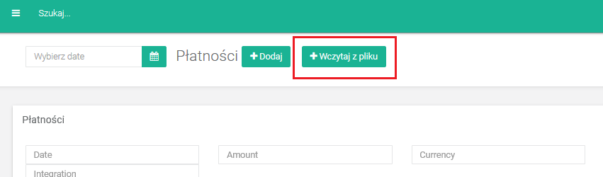 Datę, z jaką zostaną wczytane płatności, możesz ustawić w polu Wybierz datę. Jeśli nie ustawisz daty: